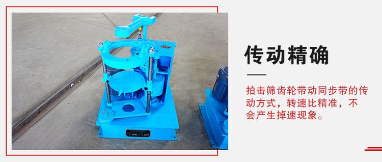 拍擊篩齒輪帶動同步帶的傳動方式,轉(zhuǎn)速比精準,不會產(chǎn)生掉速現(xiàn)象。